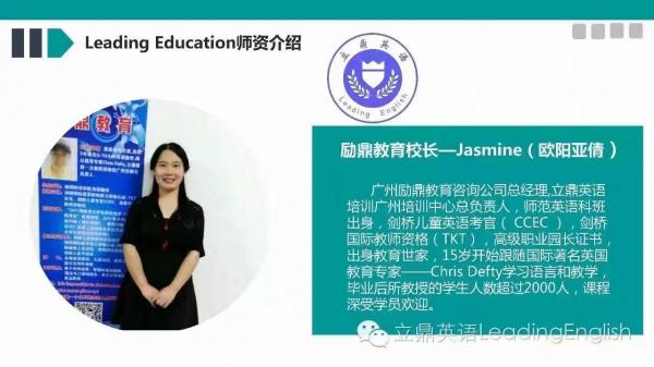 廣州勵鼎教育培訓中心(Guangzhou leading Education簡稱LE)是英國立鼎教育集團(Leading Times Education Group Limited)的下屬 公司,也是美中文教基金會授權在廣州的辦公室。公司主要從事幼兒到成人的英語培訓和相應學科的課外輔導。目前公司擁有“立鼎英語” 、“酷老師英語”、和“酷孩子英語”等英語培訓品牌,同時也是負責組織和推廣海外游學、留學、冬夏令營及美國名校插班等業務.目前公司規模擴大,同時開設藝術類培訓,開設項目有舞蹈,街舞,兒童繪畫,書畫,架子鼓,播音主持等等.